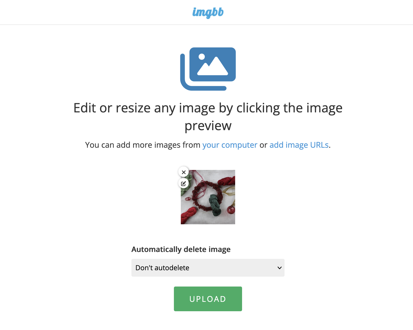 To post an image on the School of Weaving Forum we have to use ImgBB website, a free, image hosting and sharing site that allows us to upload photos without requiring an account.
